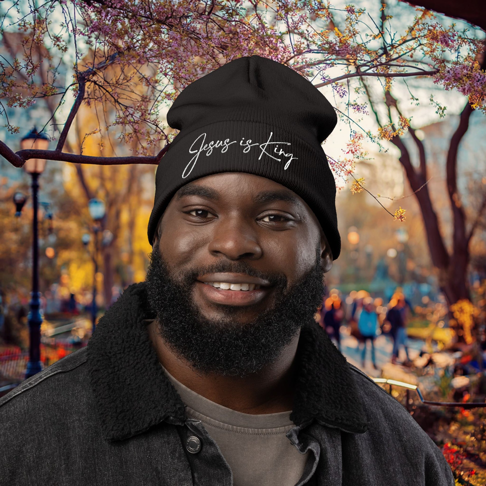 Stay cozy while sharing your faith with this premium waffle-knit beanie. Featuring bold “Jesus Is King” embroidery, it offers a snug, comfortable fit and timeless style perfect for cool days, outdoor adventures, or everyday wear. A simple yet powerful way to keep warm and spread the Word.